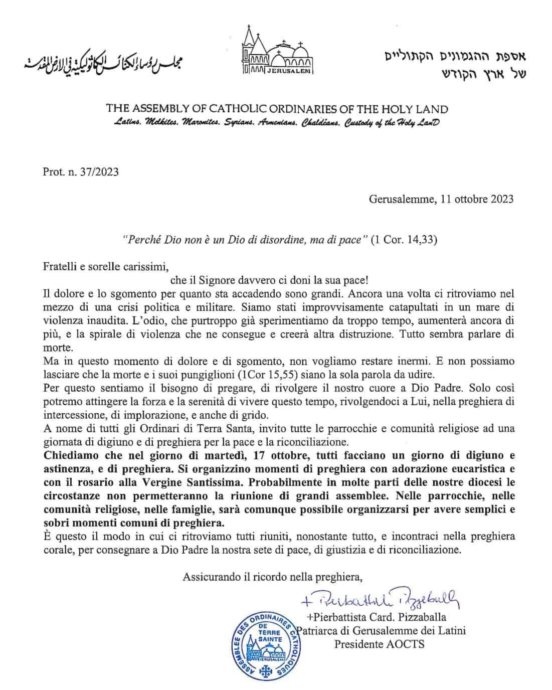 La lettera del card. Pierbattista Pizzaballa, Patriarca di Gerusalemme.