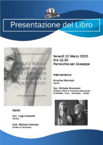 Venerdì 10 marzo 2023 alle ore 19.30 preso la Parrocchia San Giuseppe di Giovinazzo sarà presentato il testo: Adolfo Rollo e i lavori per la Chiesa di San Giuseppe a Giovinazzo, di Annalisa Mandato.