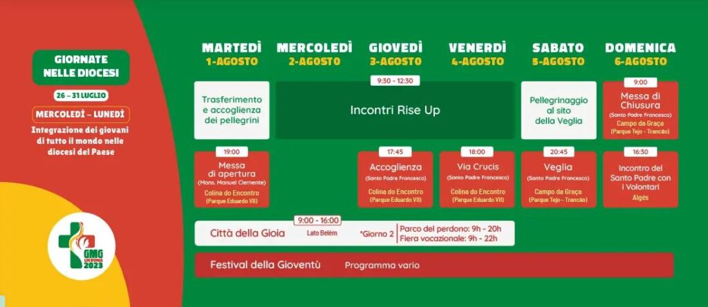 Grande fibrillazione e preparativi ultimati. Alcuni sono già partiti, la maggior parte partirà lunedì alla volta di Lisbona, dove dall’1 al 6 agosto vivranno la Giornata Mondiale della Gioventù, giornate precedute dal 26 al 31 luglio 2023 con gli incontri e gemellaggi tra diocesi di tutto il mondo.
