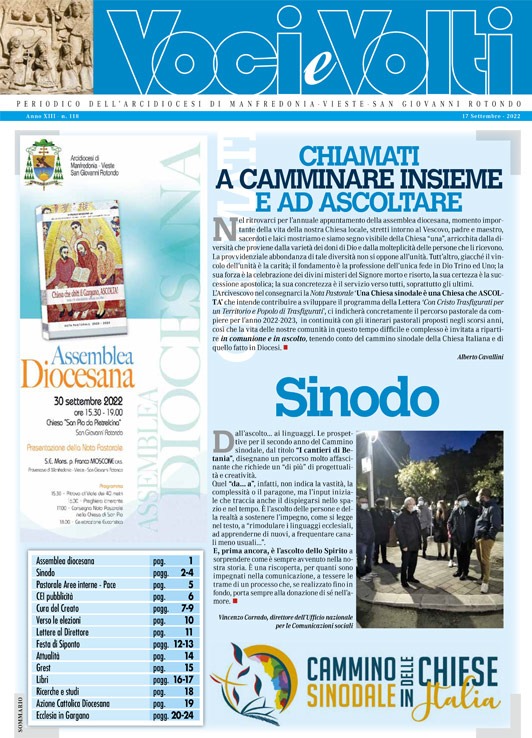 dioc. Manfredonia Anno XIII – n. 118 14 Settembre 2022 0 40 https://vocievolti.blog/anno-xii-n-118/ clic qui per l’articolo sul sito diocesano ARTICOLI CORRELATIALTRO DALL'AUTORE RETE INTERNAZIONALE “PRETI CONTRO IL GENOCIDIO” – Lettera aperta ai Vescovi Italiani in occasione della preghiera per la pace ORDINAZIONE DI DON MICHELE COPPOLECCHIA – Arcidiocesi di Manfredonia – Vieste – San Giovanni Rotondo ORDINAZIONE PRESBITERALE DI DON ELISEO COSTANTINO – Arcidiocesi di Manfredonia – Vieste – San Giovanni Rotondo GIORNATA MONDIALE DEI POVERI – 2025 – Arcidiocesi di Manfredonia – Vieste – San Giovanni Rotondo Un voto per costruire Speranza e Fraternità – Arcidiocesi di Manfredonia – Vieste – San Giovanni Rotondo