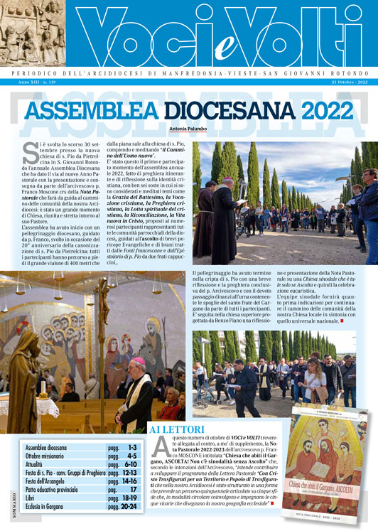 dioc. Manfredonia Anno XIII – n. 119 16 Ottobre 2022 0 34 https://vocievolti.blog/anno-xiii-n-119/ clic qui per l’articolo sul sito diocesano ARTICOLI CORRELATIALTRO DALL'AUTORE RETE INTERNAZIONALE “PRETI CONTRO IL GENOCIDIO” – Lettera aperta ai Vescovi Italiani in occasione della preghiera per la pace il giornalismo che fa vivere i settimanali diocesani – Arcidiocesi di Manfredonia – Vieste – San Giovanni Rotondo ORDINAZIONE DI DON MICHELE COPPOLECCHIA – Arcidiocesi di Manfredonia – Vieste – San Giovanni Rotondo ORDINAZIONE PRESBITERALE DI DON ELISEO COSTANTINO – Arcidiocesi di Manfredonia – Vieste – San Giovanni Rotondo GIORNATA MONDIALE DEI POVERI – 2025 – Arcidiocesi di Manfredonia – Vieste – San Giovanni Rotondo