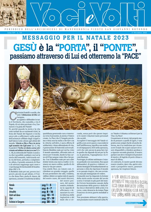 dioc. Manfredonia Anno XIV – n. 131 13 Dicembre 2023 0 37 https://vocievolti.blog/anno-xiv-n-131/ clic qui per l’articolo sul sito diocesano ARTICOLI CORRELATIALTRO DALL'AUTORE ORDINAZIONE DI DON MICHELE COPPOLECCHIA – Arcidiocesi di Manfredonia – Vieste – San Giovanni Rotondo ORDINAZIONE PRESBITERALE DI DON ELISEO COSTANTINO – Arcidiocesi di Manfredonia – Vieste – San Giovanni Rotondo GIORNATA MONDIALE DEI POVERI – 2025 – Arcidiocesi di Manfredonia – Vieste – San Giovanni Rotondo Un voto per costruire Speranza e Fraternità – Arcidiocesi di Manfredonia – Vieste – San Giovanni Rotondo Il valore dei settimanali cattolici e la forza del giornalismo di prossimità – Arcidiocesi di Manfredonia – Vieste – San Giovanni Rotondo