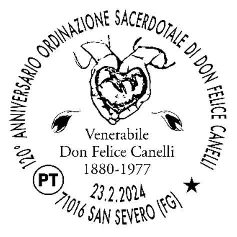 dioc. San Severo Annullo Filatelico per il 120° anniversario dell’ordinazione di don Felice Canelli 29 Febbraio 2024 0 32 Annullo Filatelico per il 120° anniversario dell’ordinazione di don Felice Canelli – Diocesi di San Severo 29 Febbraio 2024 clic qui per l’articolo sul sito della Diocesi di San Severo ARTICOLI CORRELATIALTRO DALL'AUTORE Diocesi di San Severo » parola alla Parola – DOMENICA 16/11/2025 Diocesi di San Severo » UN VOTO per COSTRUIRE SPERANZA e FRATERNITÀ Diocesi di San Severo » parola alla Parola – SABATO 15/11/2025 Diocesi di San Severo » parola alla Parola – VENERDÌ 14/11/2025 Diocesi di San Severo » parola alla Parola – MARTEDÌ 11/11/2025