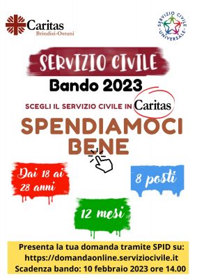 Fino alle ore 14.00 di venerdì 10 febbraio 2023. è possibile presentare domanda di partecipazione accedendo tramite SPID al portale https://domandaonline.serviziocivile.it