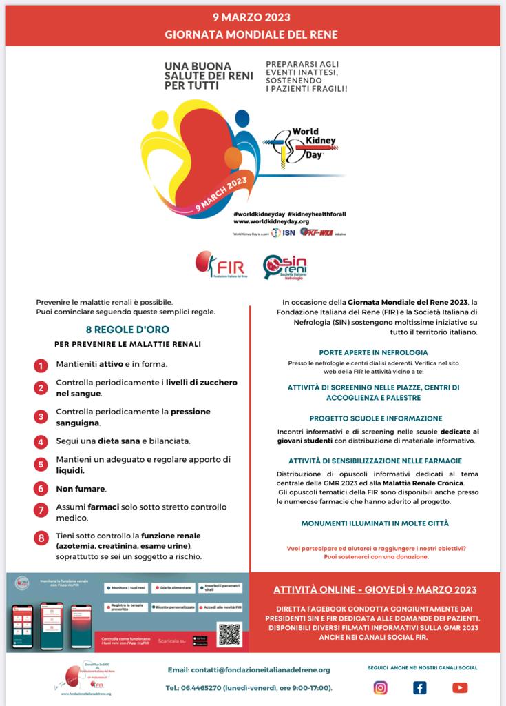 BARLETTA. ALLA CARITAS INIZIATIVA NELLA GIORNATA MONDIALE DEL RENE In occasione della giornata Mondiale del Rene prevista per il prossimo 9 marzo 2023, presso l’ambulatorio Caritas a Barletta sito in via Manfredi 45, martedì 7 marzo (a partire dalle ore 17) «i Medici Cattolici – dichiara Lorenzo Chieppa, responsabile della Caritas cittadina – con i loro specialisti in Nefrologia visiteranno i nostri senza … Continua a leggere BARLETTA. ALLA CARITAS INIZIATIVA NELLA GIORNATA MONDIALE DEL RENE