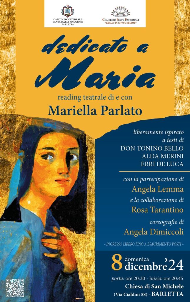 Realizzato in forma di reading teatrale ma pensato registicamente come un vero spettacolo, dove la lettura procede leggera, scandita da movimenti scenici e di danza che segnano le varie tappe del percorso, “Dedicato a Maria” è un viaggio-ricerca, spirituale e artistica, centrato sulla figura di Maria, madre di Gesù, e sull’attualità del messaggio contenuto nella Sua storia, nelle opere a Lei dedicate, nei risvolti filosofici … Continua a leggere