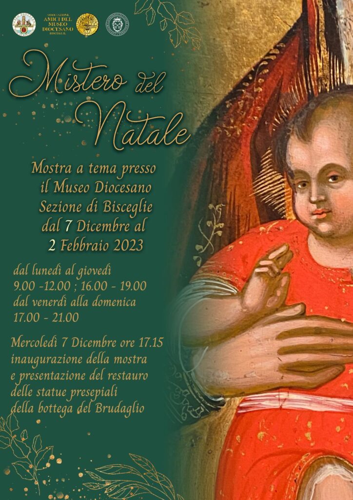 BISCEGLIE. MOSTRA A TEMA “MISTERO DEL NATALE” A Bisceglie, presso il museo diocesano, il Capitolo Concattedrale, in collaborazione con l’Associazione amici del museo,  propone: “Mistero del Natale”,  una mostra a tema che include dipinti, sculture, icone, paramenti e stampe dal XV secolo alla meta del XX. Verrà inaugurata il 7 dicembre alle ore 17,15 con la presentazione del restauro delle statue presepiali della Concattedrale, della … Continua a leggere BISCEGLIE. MOSTRA A TEMA “MISTERO DEL NATALE” »