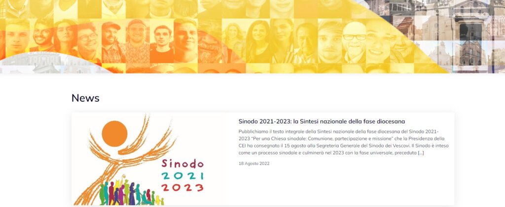 CAMMINO SINODALE. PUBBLICATA LA SINTESI NAZIONALE DELLA FASE DIOCESANA Al termine del primo anno del cammino sinodale delle Chiese che sono in Italia, la Conferenza Episcopale Italiana ha consegnato il 15 agosto un testo di servizio (che si allega), frutto del coinvolgimento di circa 50.000 gruppi sinodali, con i loro facilitatori, per una partecipazione complessiva di mezzo milione di persone. Tra le 200 sintesi diocesane … Continua a leggere CAMMINO SINODALE. PUBBLICATA LA SINTESI NAZIONALE DELLA FASE DIOCESANA
