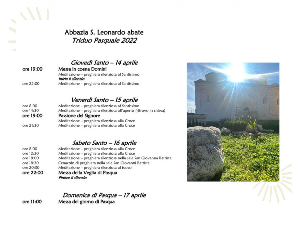 dioc. Manfredonia Celebrazioni della Settimana Santa presso l’Abbazia “San Leonardo abate” – Arcidiocesi di Manfredonia – Vieste – San Giovanni Rotondo 11 Aprile 2022 0 35 Celebrazioni della Settimana Santa presso l’Abbazia “San Leonardo abate” – Arcidiocesi di Manfredonia – Vieste – San Giovanni Rotondo Skip to content clic qui per l’articolo sul sito diocesano ARTICOLI CORRELATIALTRO DALL'AUTORE ORDINAZIONE DI DON MICHELE COPPOLECCHIA – Arcidiocesi di Manfredonia – Vieste – San Giovanni Rotondo GIORNATA MONDIALE DEI POVERI – 2025 – Arcidiocesi di Manfredonia – Vieste – San Giovanni Rotondo Un voto per costruire Speranza e Fraternità – Arcidiocesi di Manfredonia – Vieste – San Giovanni Rotondo Il valore dei settimanali cattolici e la forza del giornalismo di prossimità – Arcidiocesi di Manfredonia – Vieste – San Giovanni Rotondo Ravasi inaugura l’anno accademico dell’ISSR: “Uomo, chi sei?”
