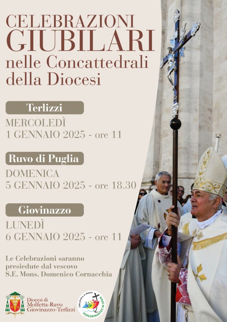 Durante il tempo liturgico di Natale, è prevista nelle Concattedrali della Diocesi una celebrazione giubilare presieduta dal Vescovo, secondo il seguente calendario: