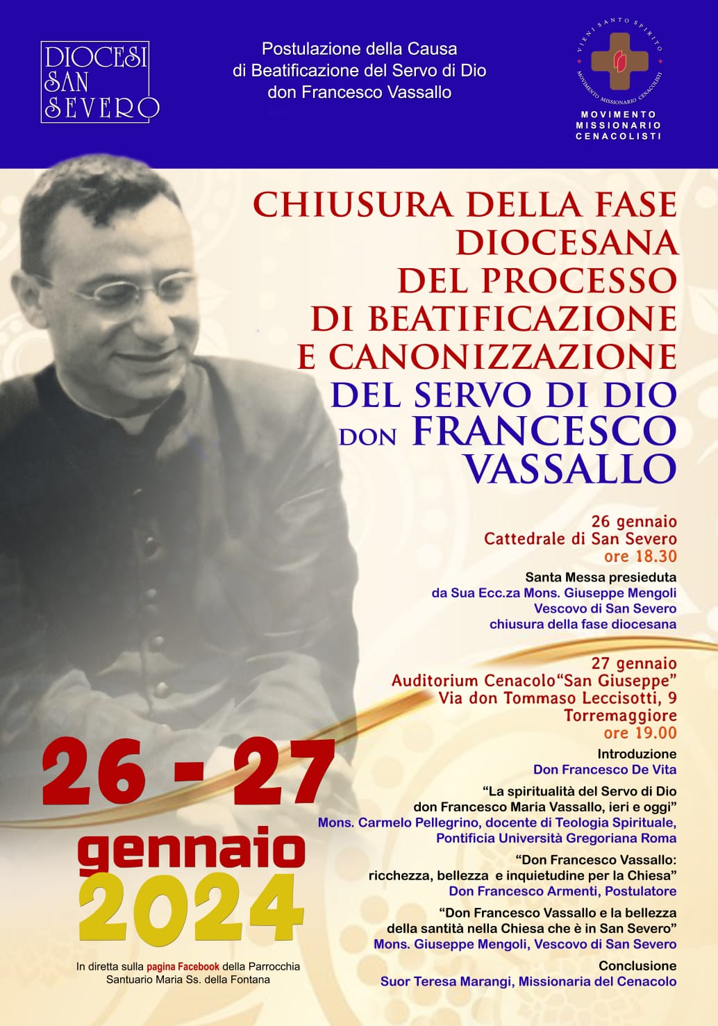 CHIUSURA DELLA FASE DIOCESANA DEL PROCESSO DI BEATIFICAZIONE E CANONIZZAZIONE DEL SERVO DI DIO FRANCESCO MARIA VASSALLO