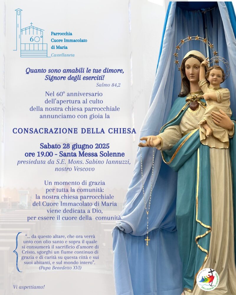Nel 60° anniversario dell’apertura al culto la Parrocchia del Cuore Immacolato di Maria in Castellaneta annuncia con gioia la