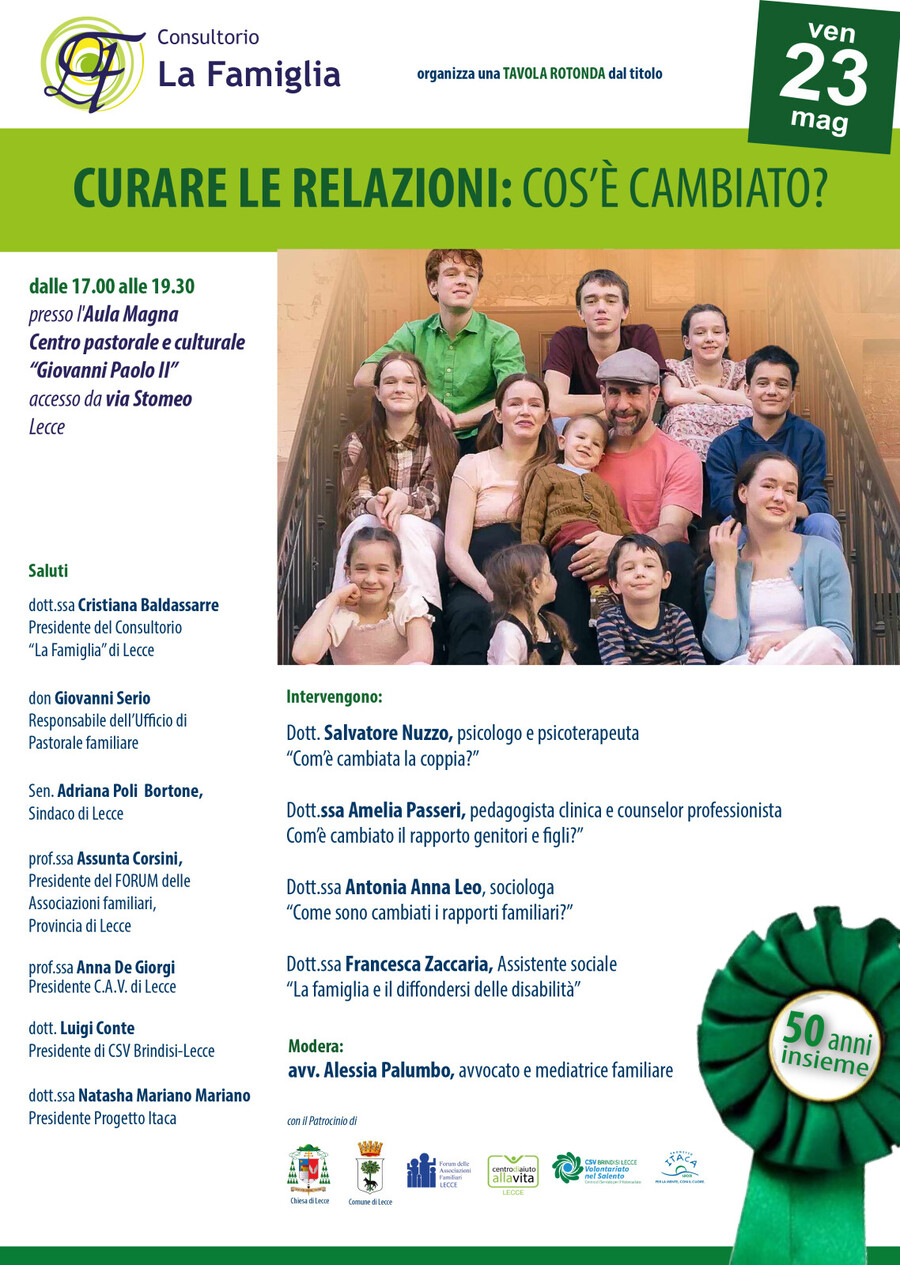 In un tempo in cui le relazioni umane sembrano sempre più minacciate dalla velocità del vivere quotidiano, dai mutamenti sociali e da una crescente solitudine, il Consultorio diocesano “La famiglia” di Lecce si prepara a celebrare un importante traguardo: cinquant’anni di impegno accanto alle persone.
