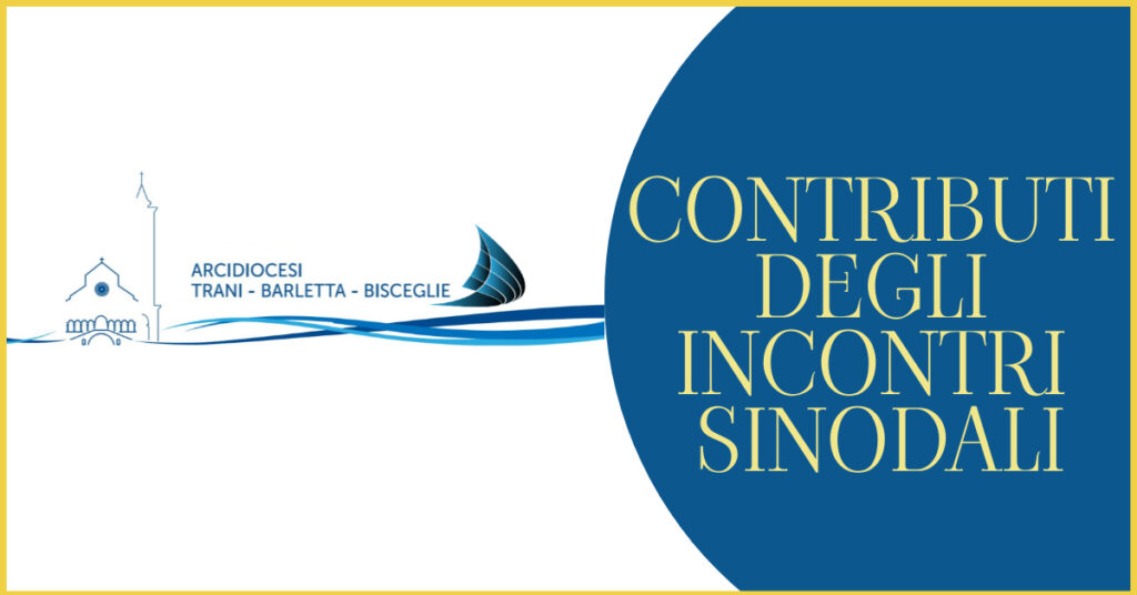 Parrocchia Angeli Custodi di Trani Parrocchia s Giuseppe Trani Parrocchia San Magno Trani Parrocchia Santa Maria delle Grazie Trani Parrocchia Spirito Santo Trani Parrocchia Madonna delle Grazie Corato Parrocchia S. Francesco d_Assisi Corato Parrocchia S. Giuseppe Corato Parrocchia Sacro Cuore di Gesù Corato Parrocchia Crocifisso Barletta Parrocchia S. Nicola Barletta Parrocchia San Giacomo Barletta Parrocchia San Paolo Apostolo Barletta Parrocchia Sant’Andrea … Continua a leggere CONTRIBUTI DEGLI INCONTRI SINODALI