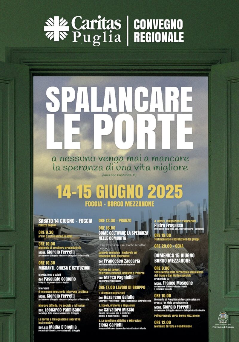 Il convegno si svolgerà tra Foggia e Borgo Mezzanone, scelta che i direttori delle Caritas di Puglia, insieme al Vescovo Delegato per la Caritas Mons. Ferretti Arcivescovo di Foggia-Bovino, hanno voluto con forza per rimettere al centro delle comunità parrocchiali il tema dell’accoglienza e della Speranza.