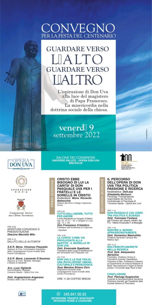 dioc. Trani CONVEGNO SUL TEMA “GUARDARE VERSO L’ALTRO, GUARDARE VERSO L’ALTO” PER CENTENARIO FONDAZIONE DELLLA CONGREGAZIONE ANCELLE DELLA DIVINA PROVVIDENZA E DELL’OPERA DON UVA 7 Settembre 2022 0 28 clic qui per l’articolo sul sito della Diocesi di Trani-Bisceglie-Barletta ARTICOLI CORRELATIALTRO DALL'AUTORE GIORNATA PRO ORANTIBUS – MONASTERO SAN RUGGIERO INCONTRO DI CLERO ZONA PASTORALE TRANI “SAN NICOLA PELLEGRINO” Giovedì 20 novembre 2025 PDF: I CONTENUTI DEL PRIMO INCONTRO – Prof. Pier Cesare RIVOLTELLA Prof. Pier Cesare RIVOLTELLA – PRIMA SESSIONE INCONTRO DIOCESANO A CORATO UN INCONTRO SULLA LIBERTA’ DI STAMPA – Un diritto da conoscere, difendere e onorare – Per giornalisti e per l’intero pubblico