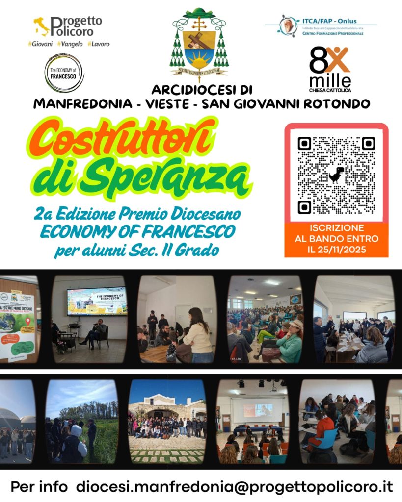Per informazioni rivolgersi al referente, prof. Massimiliano Arena: diocesi.mafredonia@progettopolicoro.it
