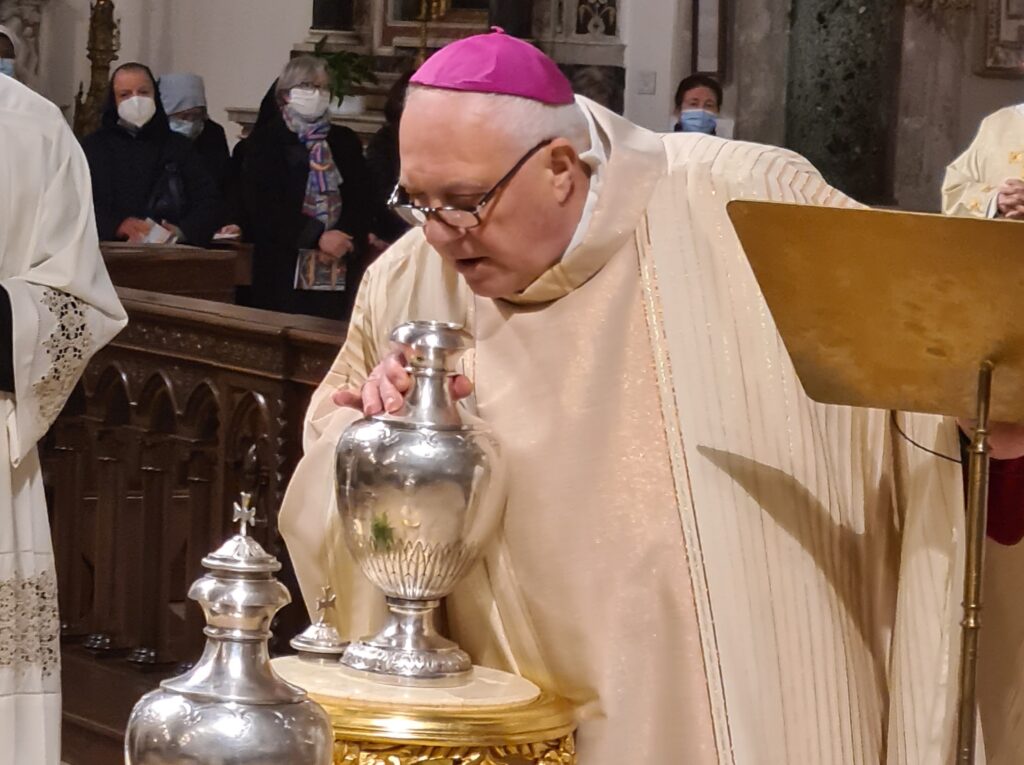 L’olio che benediciamo non è forse olio gustoso di consolazione che consente il discernimento generoso ed accogliente della volontà di Dio, per noi e per la nostra comunità cristiana?