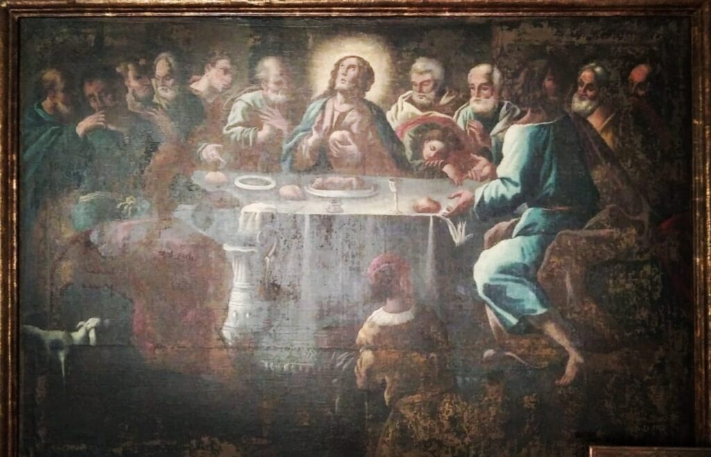 La tela donata rappresenta il Cristo e i dodici apostoli seduti intorno alla mensa, durante l’episodio riportato nei Vangeli. I personaggi sono ben caratterizzati e riconoscibili, come la figura di San Pietro alla destra di Cristo e quella del giovane San Giovanni addormentato accanto al Maestro. Spicca Giuda, unico degli apostoli dal lato opposto del tavolo con lo sguardo rivolto altrove e il sacco dei trenta denari tra le mani.