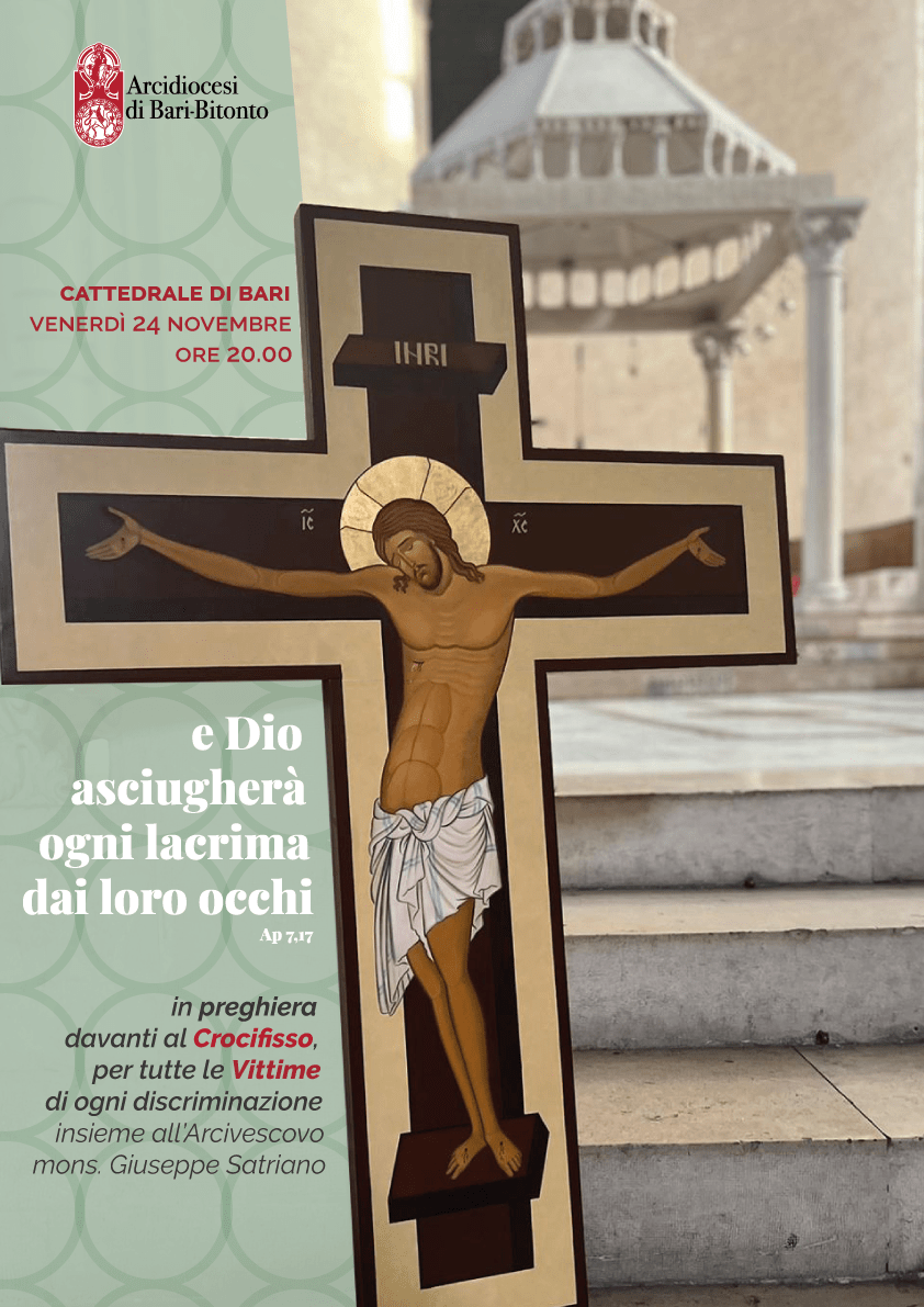 dioc. Bari "E Dio asciugherà ogni lacrima dai loro occhi" (Ap 7,17) 19 Novembre 2023 0 29 "E Dio asciugherà ogni lacrima dai loro occhi" (Ap 7,17) clic qui per l’articolo sul sito diocesano ARTICOLI CORRELATIALTRO DALL'AUTORE «Una Chiesa che non ascolta chi soffre… tradisce il Vangelo che proclama» — Arcidiocesi Bari-Bitonto Incontro degli Animatori Liturgici — Arcidiocesi Bari-Bitonto pensieri forti per tempi fragili” — Arcidiocesi Bari-Bitonto Quando la verità diventa carità nasce la santità — Arcidiocesi Bari-Bitonto IX Giornata dei Poveri — Arcidiocesi Bari-Bitonto