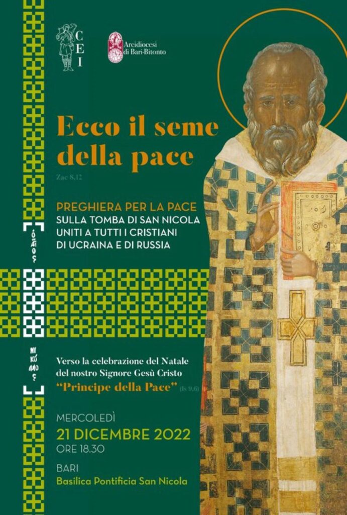 La Conferenza Episcopale Italiana e l’Arcidiocesi di Bari-Bitonto invitano alla Preghiera per la Pace sulla Tomba di San Nicola uniti a tutti i Cristiani di Ucraina e di Russia.