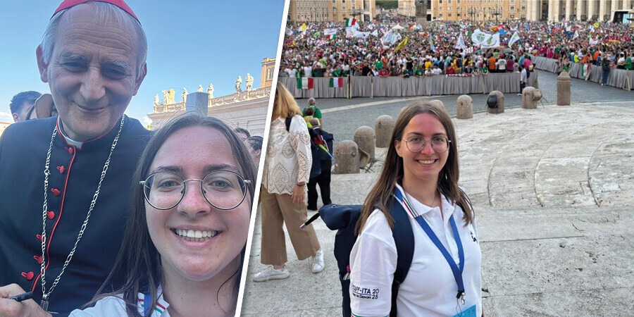 Poi Martina ha voluto anche raccontare l’emozione grande di aver potuto vedere da vicino Papa Leone: “L’esperienza del volontariato ci ha donato la gioia di incrociare lo sguardo di Papa Leone XIV che, mentre saliva le scale del palco, ci ha guardato e sorriso. In questo sorriso abbiamo scrutato l’emozione del pastore e del suo gregge, chiamati a percorrere insieme la via del vangelo”.