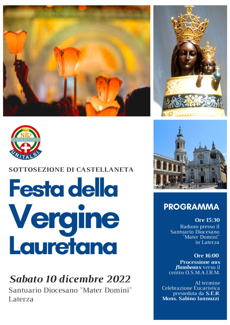 Sabato 10 dicembre 2022 la sottosezione di Castellaneta dell’Unitalsi si ritroverà a Laterza per la Festa della Vergine Lauretana.