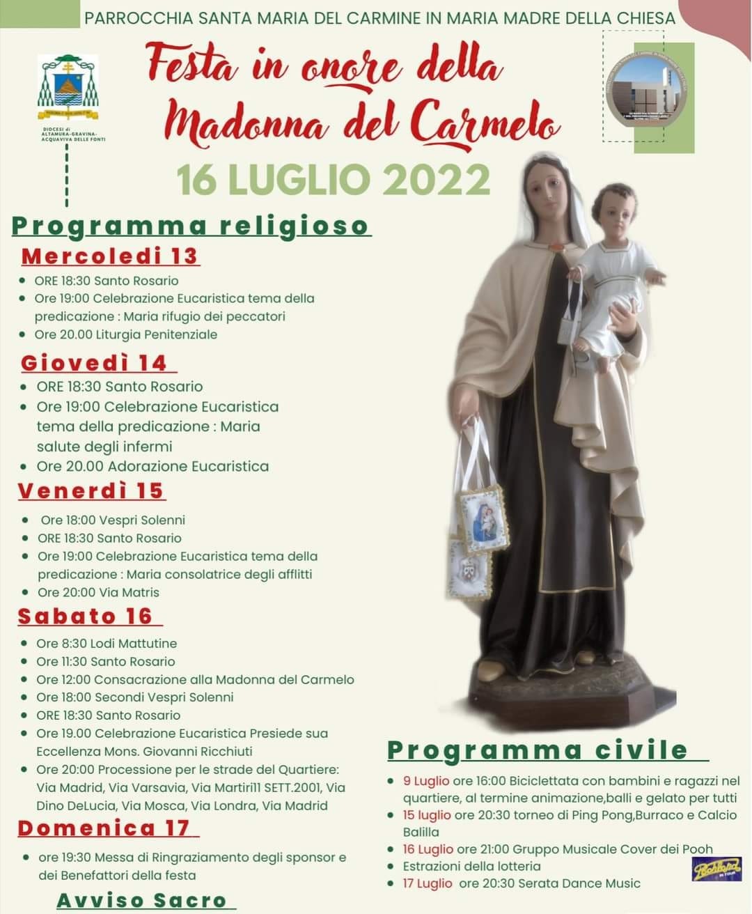 Consulta la locandina e scopri il programma promosso dalla parrocchia Santa Maria del Carmine in Maria Madre della Chiesa di Altamura