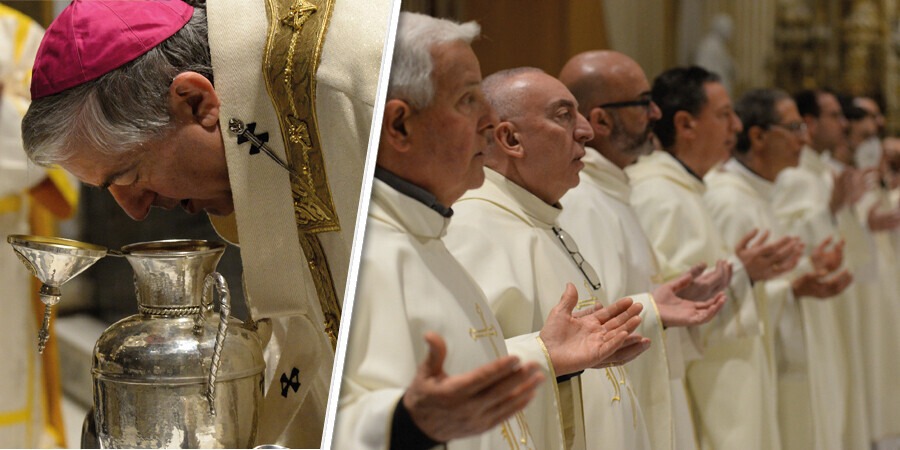 Una concelebrazione solenne e ricca di segni e significati al centro della Settimana Santa e alla vigilia del Triduo pasquale durante la quale è stato consacrato il Crisma e sono stati benedetti l’olio dei catecumeni e l’olio degli infermi, necessari per la celebrazione dei sacramenti. La Messa del Crisma (tra i concelebranti anche mons. Oronzo De Simone che proprio ieri compiva 93 anni) è stata trasmessa in diretta social da Portalecce Tv (GUARDA).