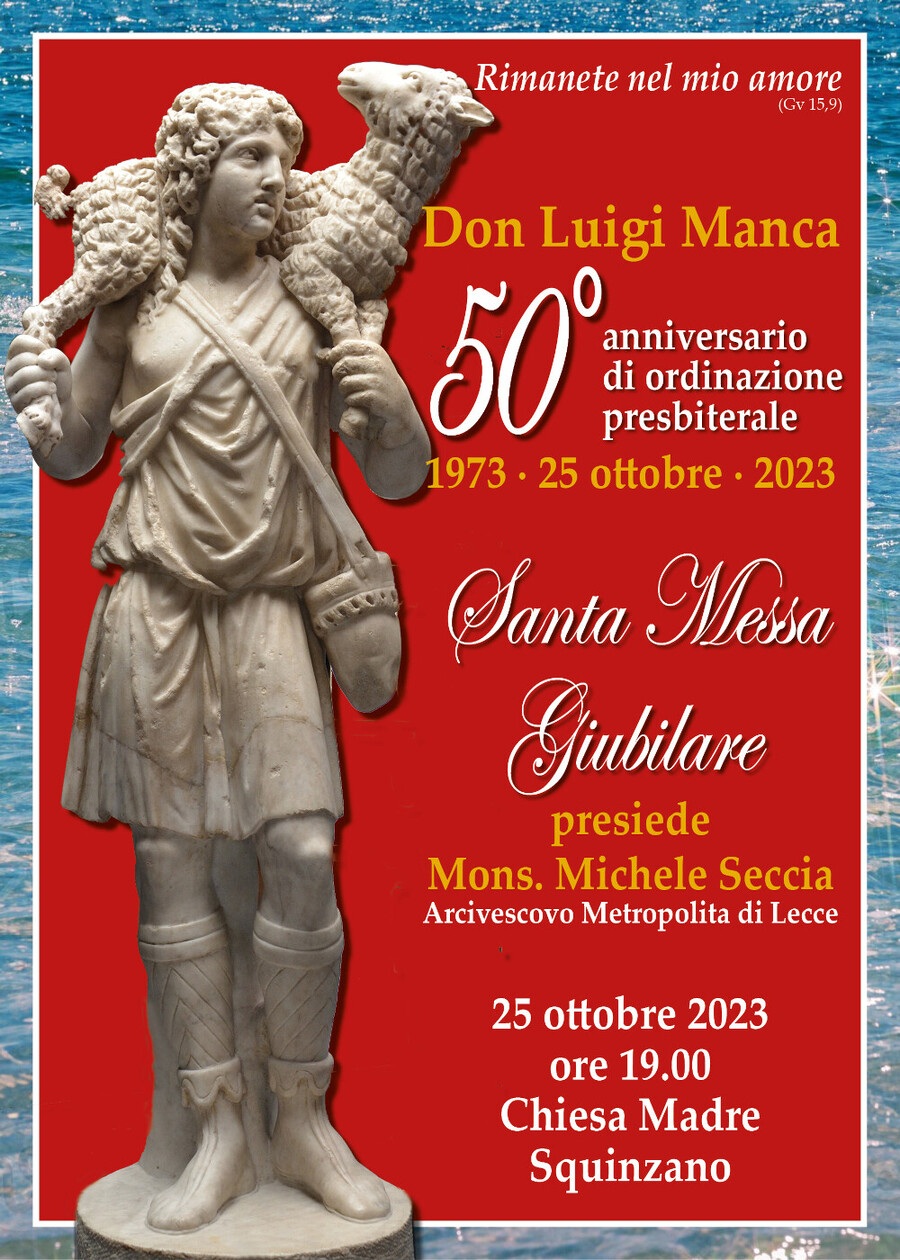 Domani 25 ottobre, mons. Luigi Manca, celebrerà il suo 50.mo anniversario di presbiterato. Oggi è l’arcivescovo Michele Seccia – che domani alle 19, nella matrice di Squinzano, presiederà l’eucarestia giubilare – a rendergli omaggio e gratitudine.