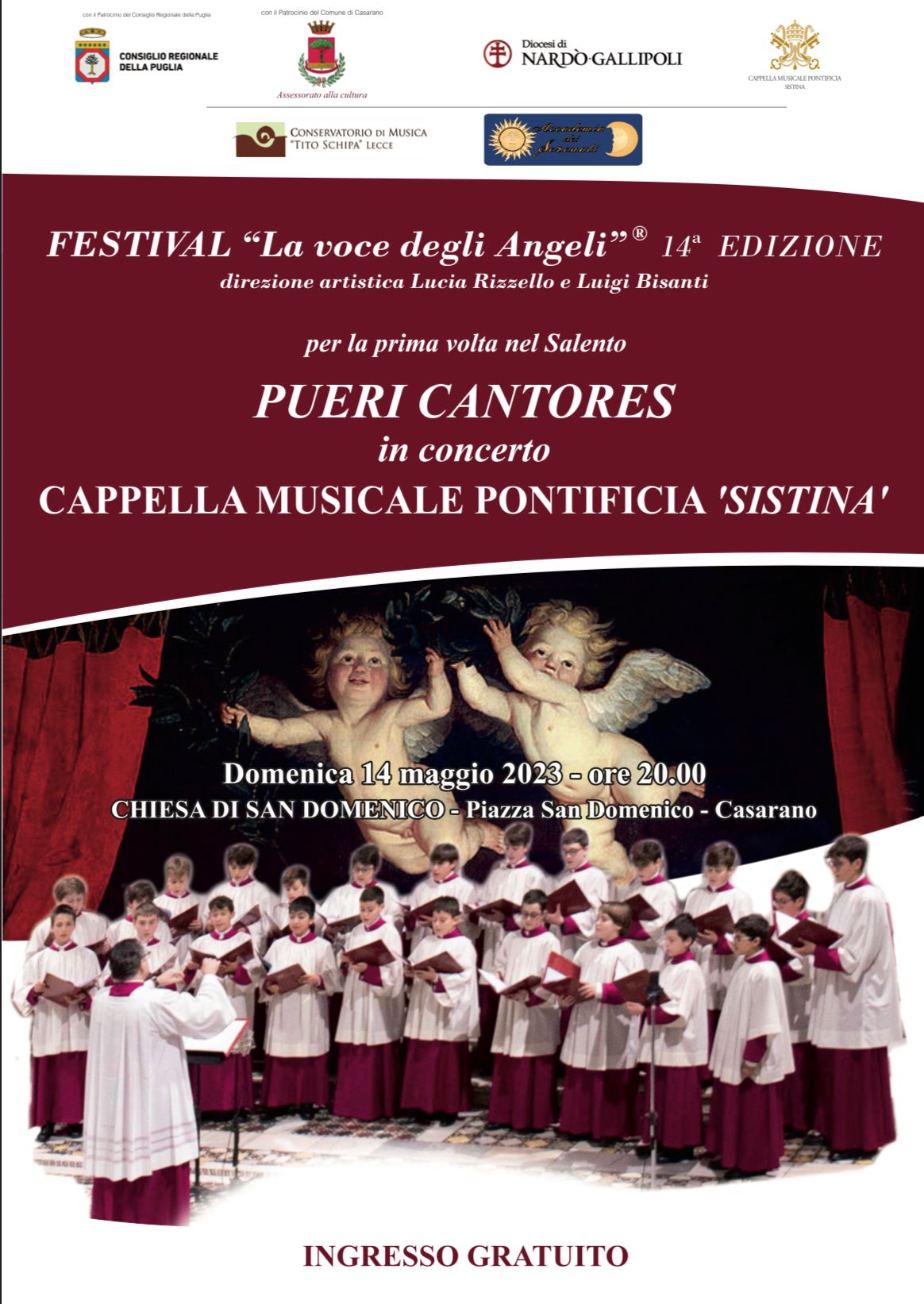 Il concerto, che si terrà domenica 14 maggio 2023, alle ore 20.00, presso la Chiesa di S. Domenico in Casarano è inserito nel programma del Festival “La Voce degli Angeli” giunto ormai alla 14ma edizione sotto la direzione artistica di Lucia Rizzello e Luigi Bisanti.