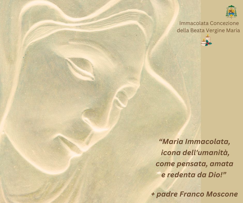 dioc. Manfredonia II domenica di Avvento 2024 – Immacolata Concezione – Arcidiocesi di Manfredonia – Vieste – San Giovanni Rotondo 7 Dicembre 2024 0 22 7 Dicembre 20246 Dicembre 2024 Il pensiero social di padre Franco Moscone “Maria Immacolata, icona dell’umanità, come pensata, amata e redenta da Dio!” + padre Franco Moscone clic qui per l’articolo sul sito diocesano ARTICOLI CORRELATIALTRO DALL'AUTORE RETE INTERNAZIONALE “PRETI CONTRO IL GENOCIDIO” – Lettera aperta ai Vescovi Italiani in occasione della preghiera per la pace ORDINAZIONE DI DON MICHELE COPPOLECCHIA – Arcidiocesi di Manfredonia – Vieste – San Giovanni Rotondo ORDINAZIONE PRESBITERALE DI DON ELISEO COSTANTINO – Arcidiocesi di Manfredonia – Vieste – San Giovanni Rotondo GIORNATA MONDIALE DEI POVERI – 2025 – Arcidiocesi di Manfredonia – Vieste – San Giovanni Rotondo Un voto per costruire Speranza e Fraternità – Arcidiocesi di Manfredonia – Vieste – San Giovanni Rotondo