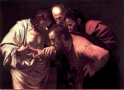 Tommaso più che mettere il dito nelle piaghe di Cristo (il testo evangelico per sé non autorizza a ritenerlo) mette in realtà il dito nella piaga che è la nostra fede sempre in pericolo. Per sprofondare fortunatamente alla fine nelle parole che ne svelano l’autentica statura: “Mio Signore e mio Dio!”.