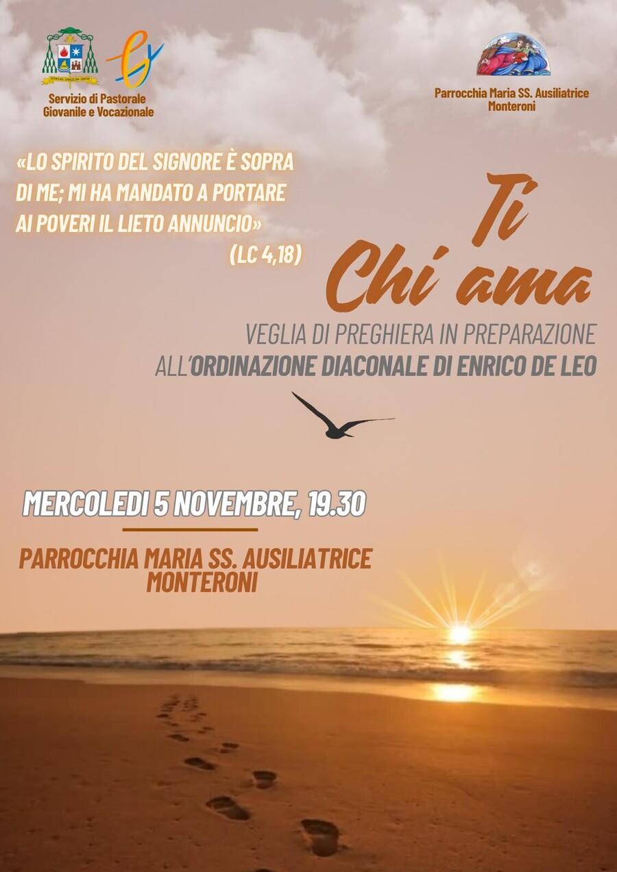 Il primo appuntamento mostra una particolare attenzione vocazionale: stasera, 5 novembre, presso la parrocchia Maria SS. Ausiliatrice in Monteroni alle 19.30 si terrà infatti una veglia di preghiera in preparazione all’ordinazione diaconale del seminarista Enrico De Leo (LEGGI), che domani alle 18, sarà ordinato dall’arcivescovo Angelo Raffaele Panzetta durante la celebrazione eucaristica per il 268° anniversario della Dedicazione della chiesa cattedrale.