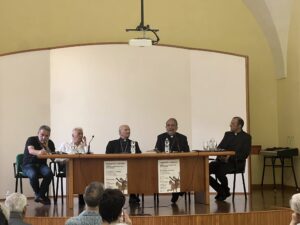 Presenti, oltre all’autore, Mons. Francesco Neri, Don Alessandro Grande, Rettore del Seminario Arcivescovile di Otranto, Mons. Francesco Cacucci, Arcivescovo emerito di Bari-Bitonto già arcivescovo di Otranto, e Luigi De Luca, Direttore del Polo Biblomuseale di Lecce e coordinatore dei Poli Biblomuseali della Regione Puglia.