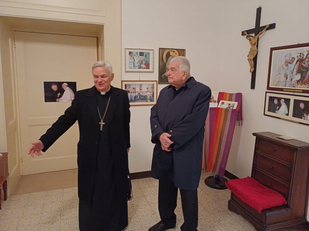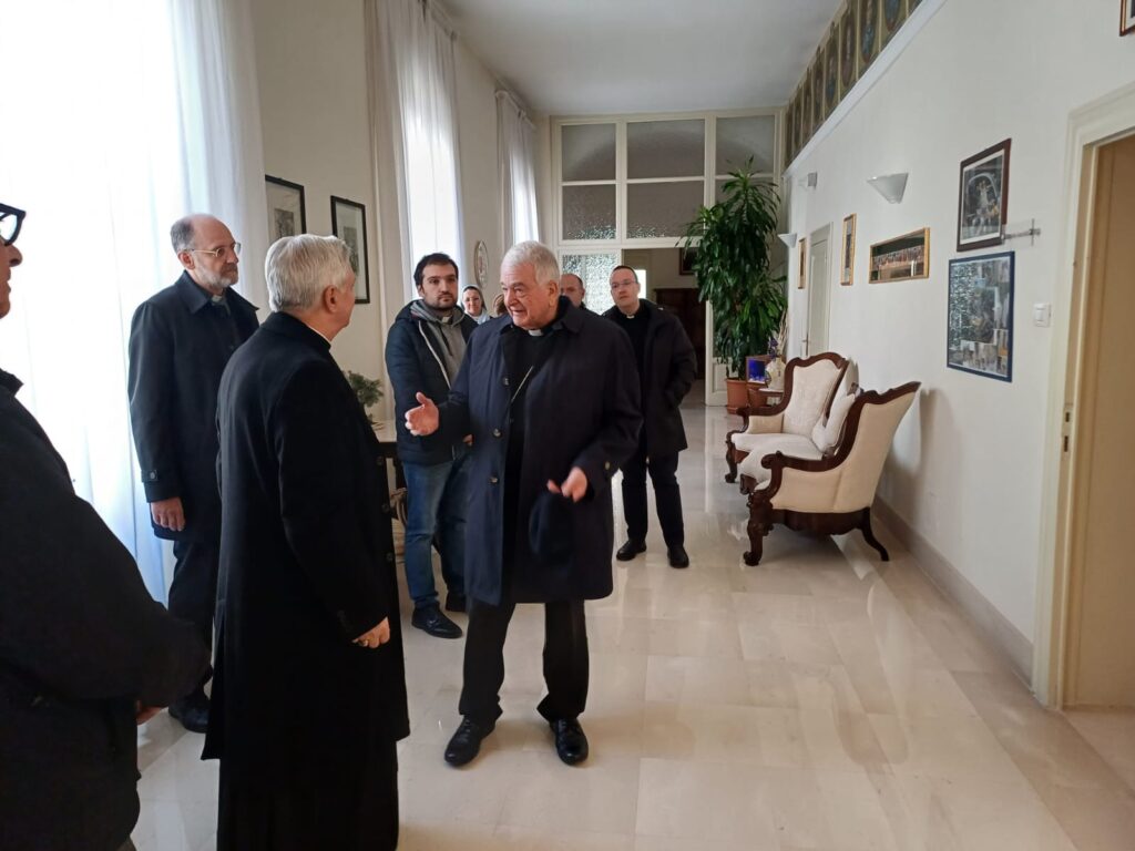 Il cardinale ha iniziato la sua visita incontrando il vescovo Domenico Cornacchia, con il quale ha avuto uno scambio su temi spirituali e pastorali. Successivamente, il porporato, ha visitato la stanza del Venerabile Antonio Bello, un momento di riflessione davanti alla memoria di don Tonino che ha dedicato la sua vita al servizio della fede e della comunità, in modo particolare i più deboli.