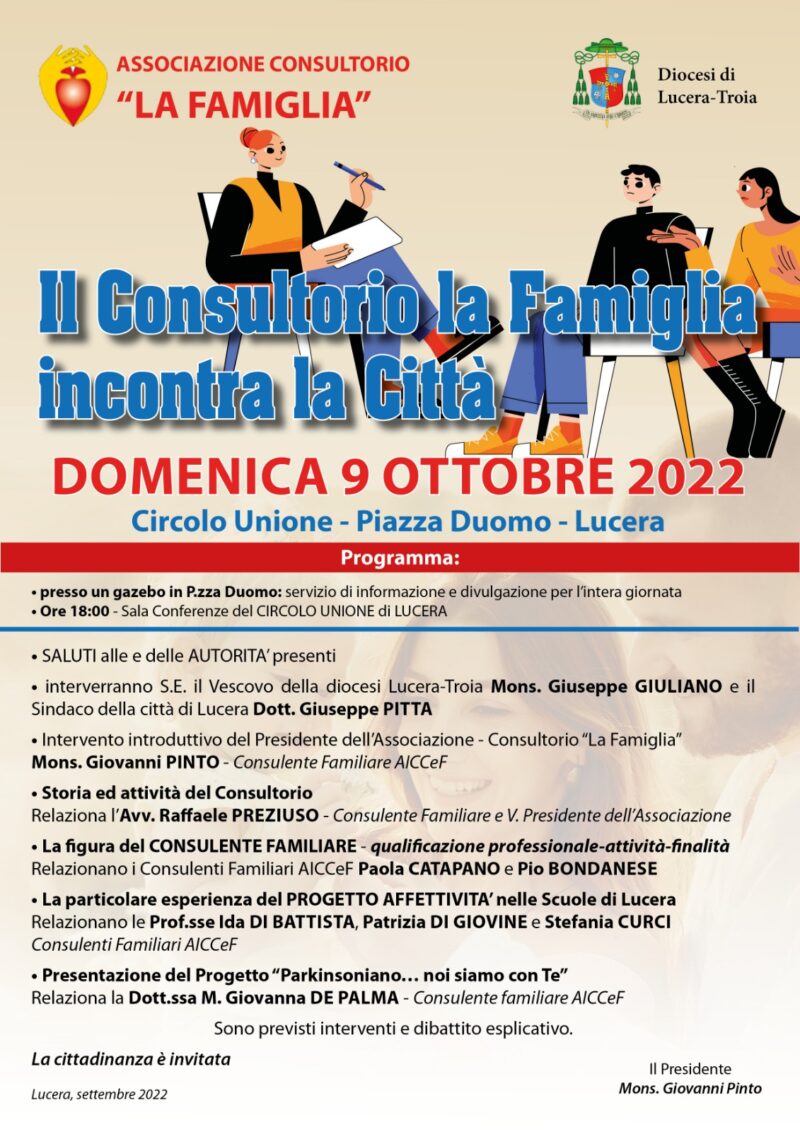 Il Consultorio “La Famiglia”, domenica 9 ottobre 2022, incontrerà la Città di Lucera.