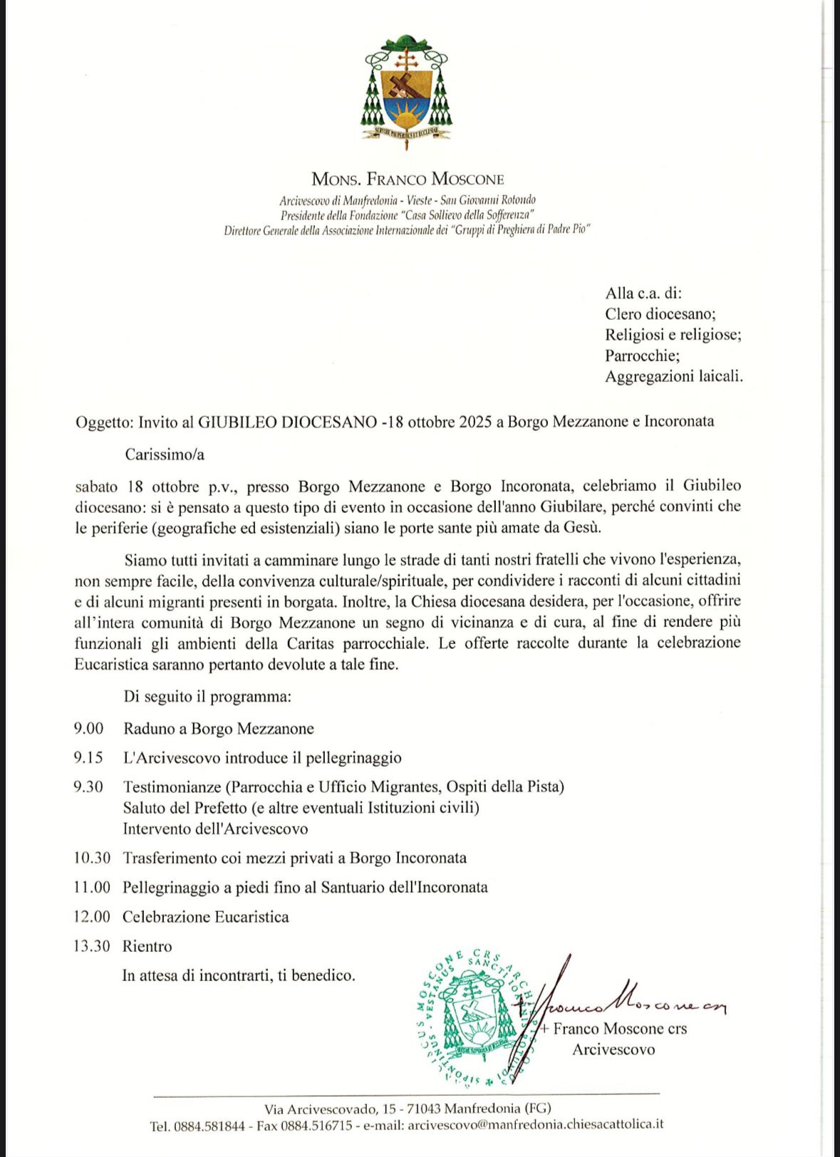La nostra Chiesa diocesana si prepara a vivere un momento di grazia speciale: il Giubileo diocesano del 18 ottobre 2025, a Borgo Mezzanone e Borgo Incoronata.