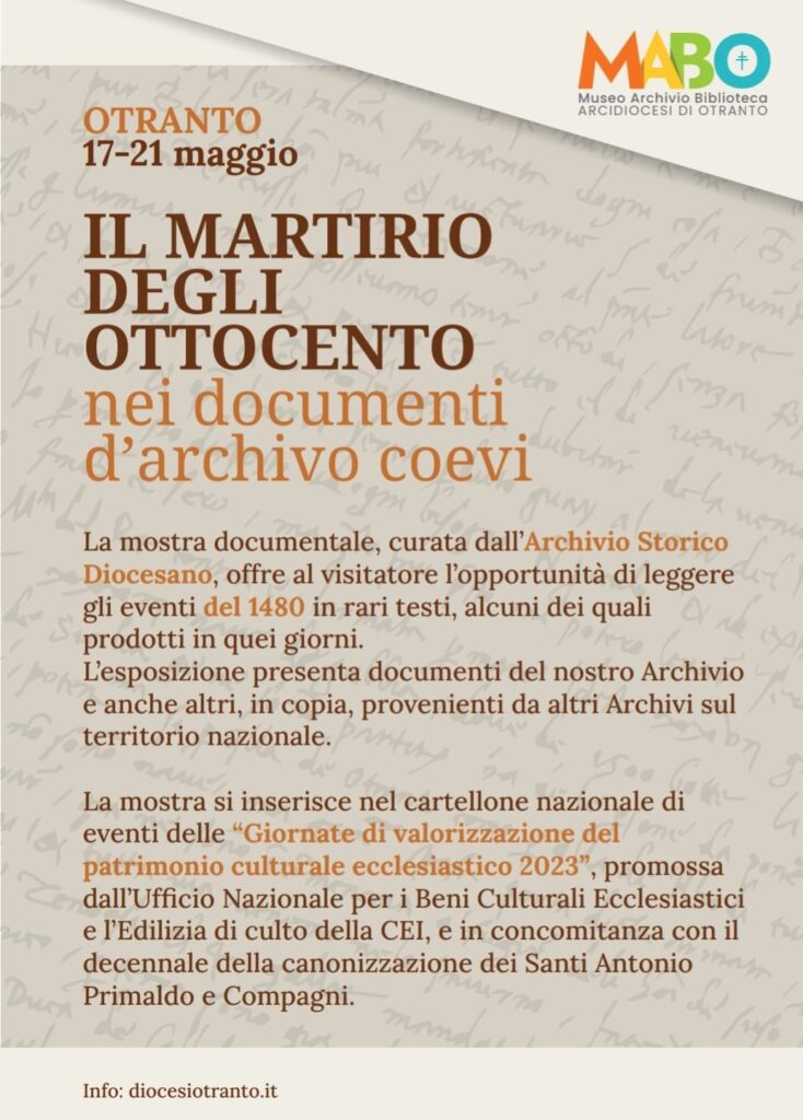 dioc. Otranto IL MARTIRIO DEGLI OTTOCENTO 13 Maggio 2023 0 35 clic qui per l’articolo sul sito diocesano ARTICOLI CORRELATIALTRO DALL'AUTORE Run&Walk for Mary San Francesco d’Assisi. Protagonista della letteratura e dell’arte medievale COMMENTO AL VANGELO. XXXIII DEL TEMPO ORDINARIO Ammissione di Ludovico Cannazza tra i candidati agli ordini sacri Scuola della Parola – Arcidiocesi di Otranto