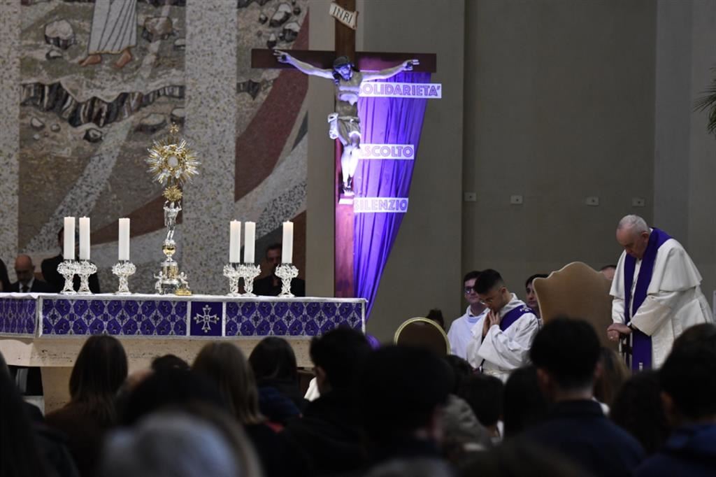 Papa Francesco è andato nella parrocchia di Santa Maria delle Grazie al Trionfale, per presiedere una Liturgia Penitenziale per la Riconciliazione di più penitenti con la confessione e l’assoluzione individuale. La celebrazione ha aperto l’iniziativa quaresimale “24 ore per il Signore”, promossa dal Dicastero per l’Evangelizzazione. Anche quest’anno l’evento si celebrerà nelle diocesi di tutto il mondo, il 17 e il 18 marzo, alla vigilia della IV domenica di Quaresima, domenica “in Laetare”.