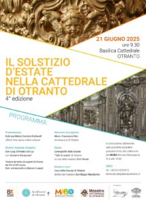 Così, nel giorno più lungo dell’anno, il mosaico e la basilica celebrano insieme la fusione tra natura e arte, bellezza e promessa di eternità, luce e pietra, cielo e terra. Un’occasione per narrare, attraverso un ideale percorso di iniziazione cristiana, l’universale storia della salvezza. Cultura, arte e fede dialogheranno in una mattinata dedicata alla riscoperta del significato cristologico del tempo e della luce.