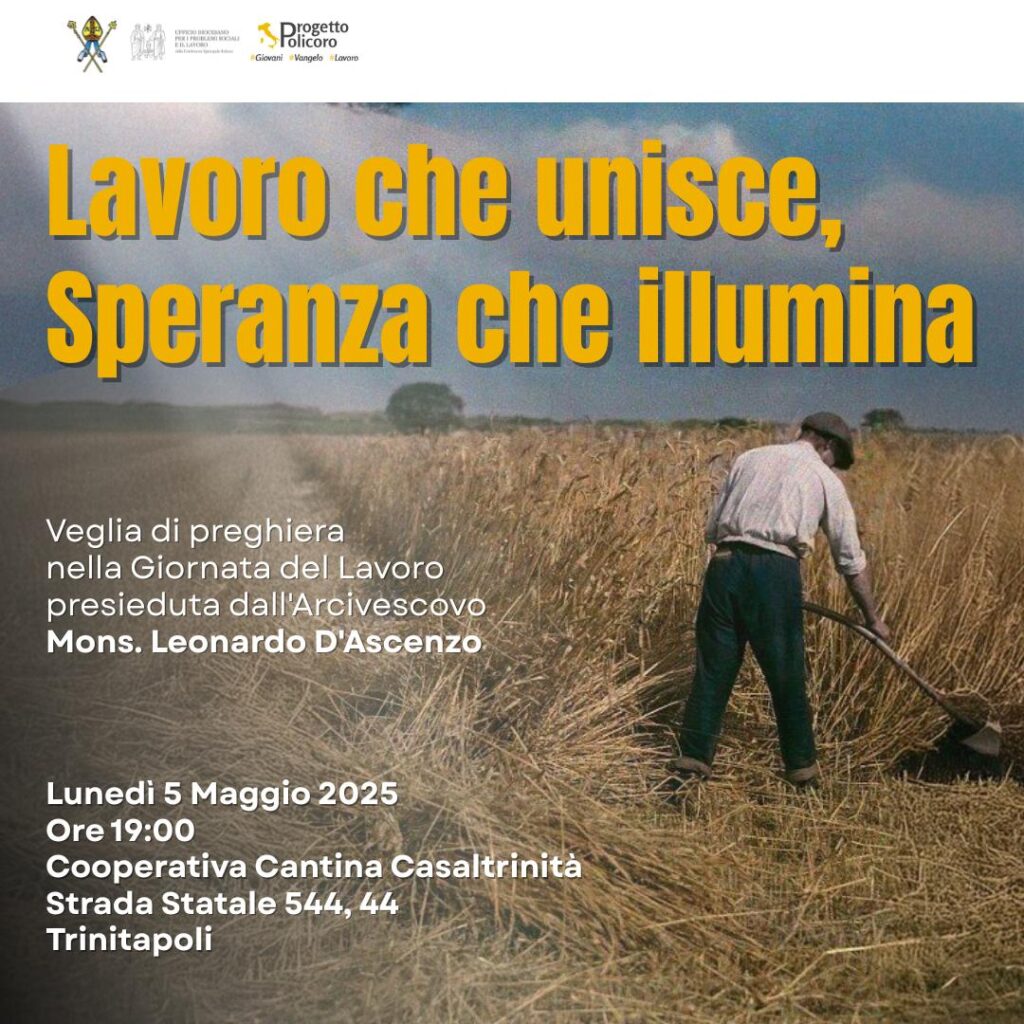 «La Festa dei Lavoratori del 1 Maggio – si legge in una comunicazione dell’Ufficio diocesano Problemi sociali e del Lavoro unitamente all’equipe del Progetto Policoro diocesano – è un’occasione proficua per riflettere sulla situazione del lavoro oggi nel mondo e sulle sfide che attendono il mercato del lavoro in Italia. La Conferenza Episcopale Italiana ci invita ad un confronto serio sul tema, alla luce … Continua a leggere