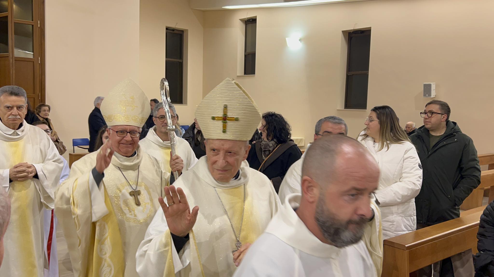 facendomi interprete dei sentimenti del Vescovo emerito Mario, del Presbiterio diocesano e religioso, dei Diaconi, dei Consacrati e dei fedeli laici della nostra Diocesi, dei rappresentanti delle istituzioni civili e delle Autorità presenti, provenienti dai sei Comuni della nostra Diocesi, mi onoro di porgerLe un saluto carico di gratitudine e di riconoscenza al termine del suo servizio episcopale in mezzo a noi.