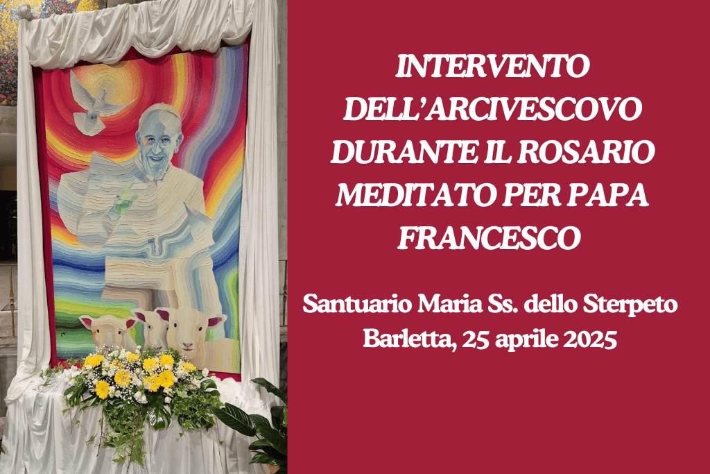 dioc. Trani INTERVENTO DELL’ARCIVESCOVO DURANTE IL ROSARIO MEDITATO PER PAPA FRANCESCO 26 Aprile 2025 0 27 clic qui per l’articolo sul sito della Diocesi di Trani-Bisceglie-Barletta ARTICOLI CORRELATIALTRO DALL'AUTORE GIORNATA PRO ORANTIBUS – MONASTERO SAN RUGGIERO INCONTRO DI CLERO ZONA PASTORALE TRANI “SAN NICOLA PELLEGRINO” Giovedì 20 novembre 2025 PDF: I CONTENUTI DEL PRIMO INCONTRO – Prof. Pier Cesare RIVOLTELLA Prof. Pier Cesare RIVOLTELLA – PRIMA SESSIONE INCONTRO DIOCESANO A CORATO UN INCONTRO SULLA LIBERTA’ DI STAMPA – Un diritto da conoscere, difendere e onorare – Per giornalisti e per l’intero pubblico