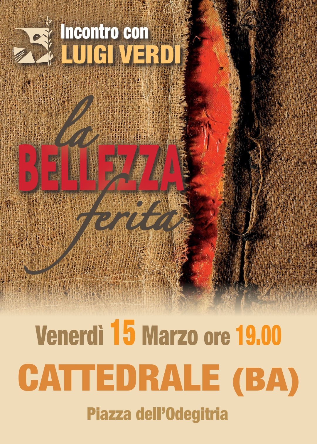 Venerdì 15 marzo, alle ore 19.00, nella Cattedrale di Bari, vivremo un incontro di preghiera con don Luigi Verdi, fondatore della Fraternità di Romena (https://www.romena.it/), dal titolo La bellezza ferita.