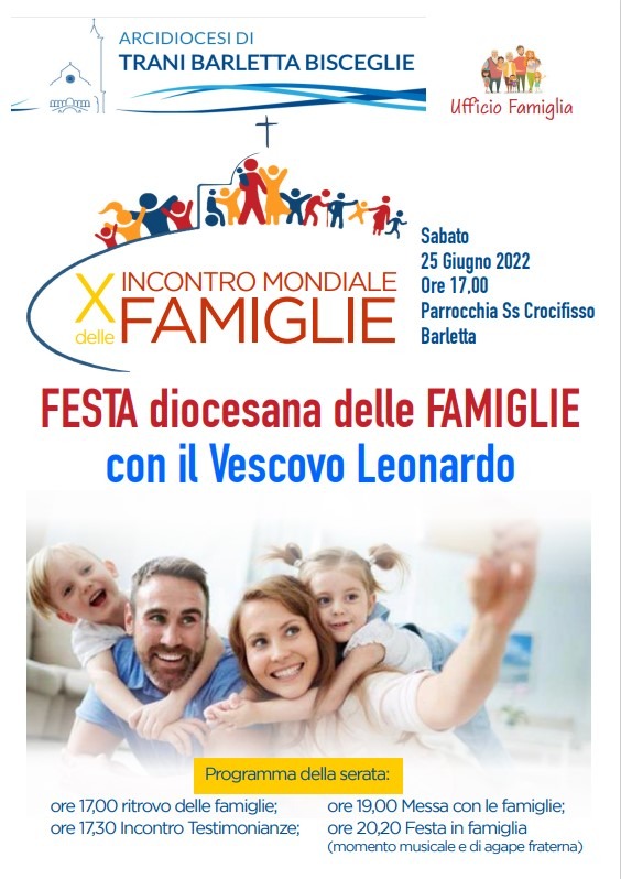 dioc. Trani LA FESTA DIOCESANA DELLE FAMIGLIE CON IL VESCOVO LEONARDO 2 Giugno 2022 0 32 clic qui per l’articolo sul sito della Diocesi di Trani-Bisceglie-Barletta ARTICOLI CORRELATIALTRO DALL'AUTORE PDF: I CONTENUTI DEL PRIMO INCONTRO – Prof. Pier Cesare RIVOLTELLA Prof. Pier Cesare RIVOLTELLA – PRIMA SESSIONE INCONTRO DIOCESANO A CORATO UN INCONTRO SULLA LIBERTA’ DI STAMPA – Un diritto da conoscere, difendere e onorare – Per giornalisti e per l’intero pubblico BISCEGLIE, PARROCCHIA SANT’ANDREA APOSTOLO, CELEBRAZIONE EUCARISTICA PRESIEDUTA DALL’ARCIVESCOVO PER L’INIZIO DEL MINISTERO PASTORALE DI PARROCO DI DON FRANCESCO LORUSSO INCONTRO DI CLERO ZONA PASTORALE OFANTINA Trinitapoli, 17 novembre 2025