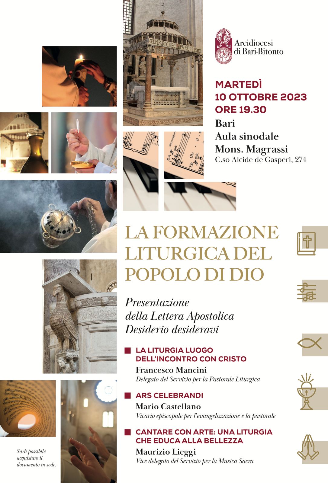 Martedì 10 ottobre 2023, alle ore 19.30, nell’Aula sinodale “Mons. Magrassi” si terrà una serata di riflessione e confronto sulla Lettera apostolica Desiderio desideravi sulla formazione liturgica del popolo di Dio, organizzata insieme a don Mario Catellano, Vicario per la Pastorale e l’Evangelizzazione e don Maurizio Lieggi, vice delegato del Servizio per la Musica Sacra.