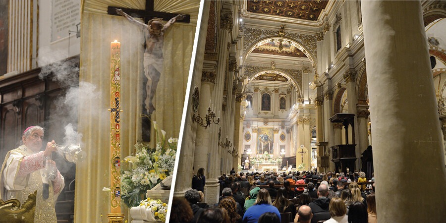 Così l’arcivescovo Michele Seccia ha aperto l’omelia in una cattedrale gremita, ieri sera nella Veglia di Pasqua. Hanno concelebrato con lui il vescovo Cristoforo Palmieri, don Vito Caputo e don Andrea Gelardo. Il servizio liturgico è stato prestato dai seminaristi teologi della diocesi.