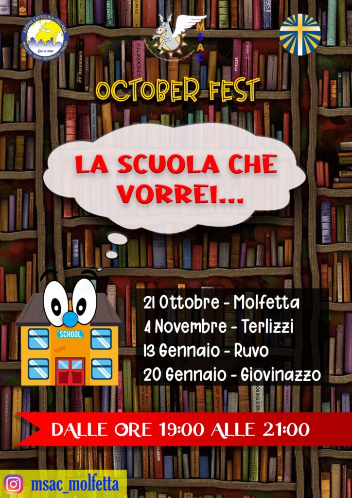 Comunichiamo che il Movimento Studenti di Azione Cattolica propone agli studenti di scuola superiore l’Oktober fest sul tema “La scuola che vorrei”.