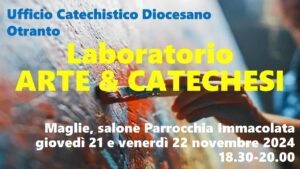 L’Ufficio Catechistico Diocesano, il 21 e 22 novembre, dalle ore 18:30 alle ore 20:00, presso il salone della Parrocchia Immacolata, organizza il Laboratorio “ARTE & CATECHESI”.